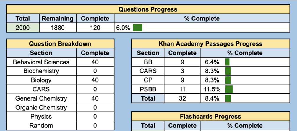 Starting to study for the MCAT is difficult, and one of the roadblocks is often creating a structured plan and tracking your progress. Well, here is a solution!